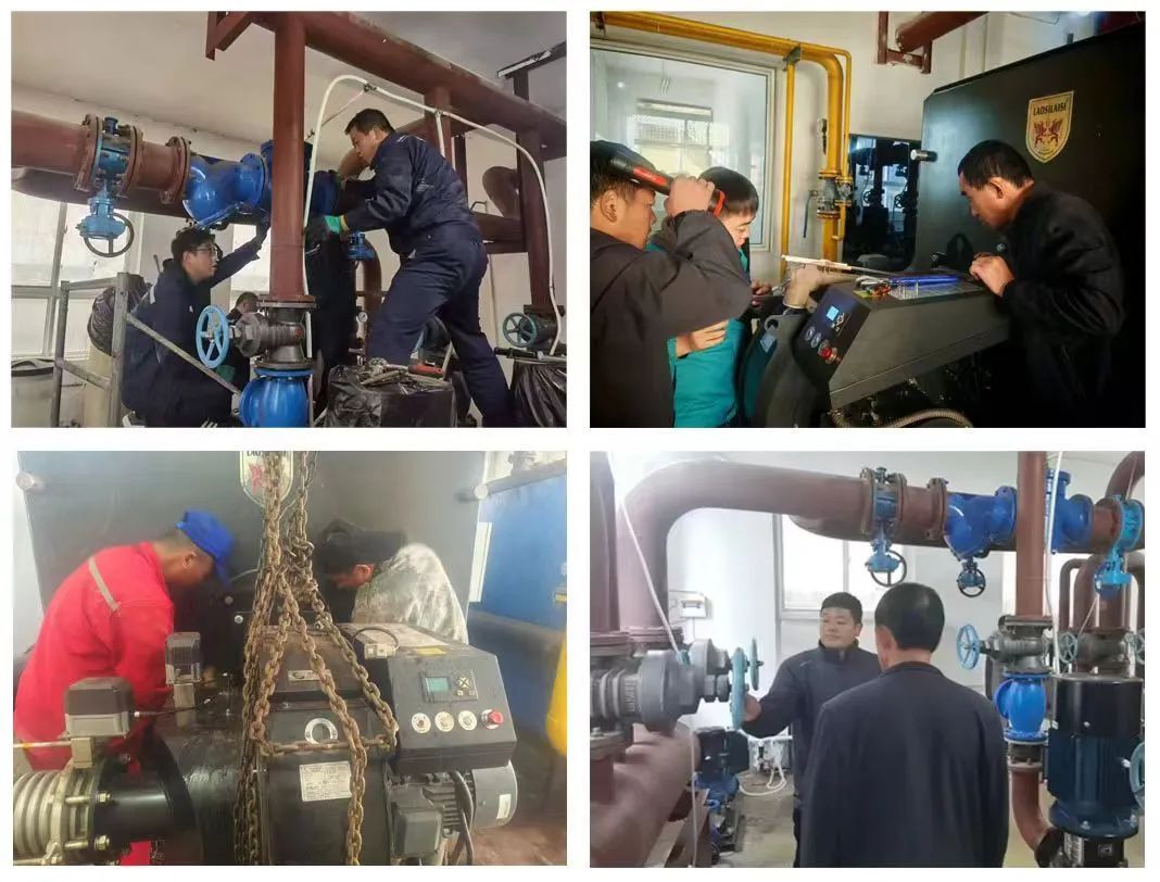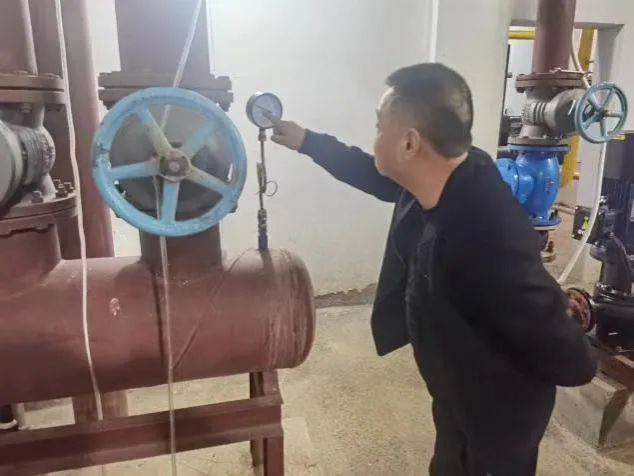 工作人员认真排查、维修供暖设施设备,每日检查锅炉运转情况,查看水压和管道压力是否正常。